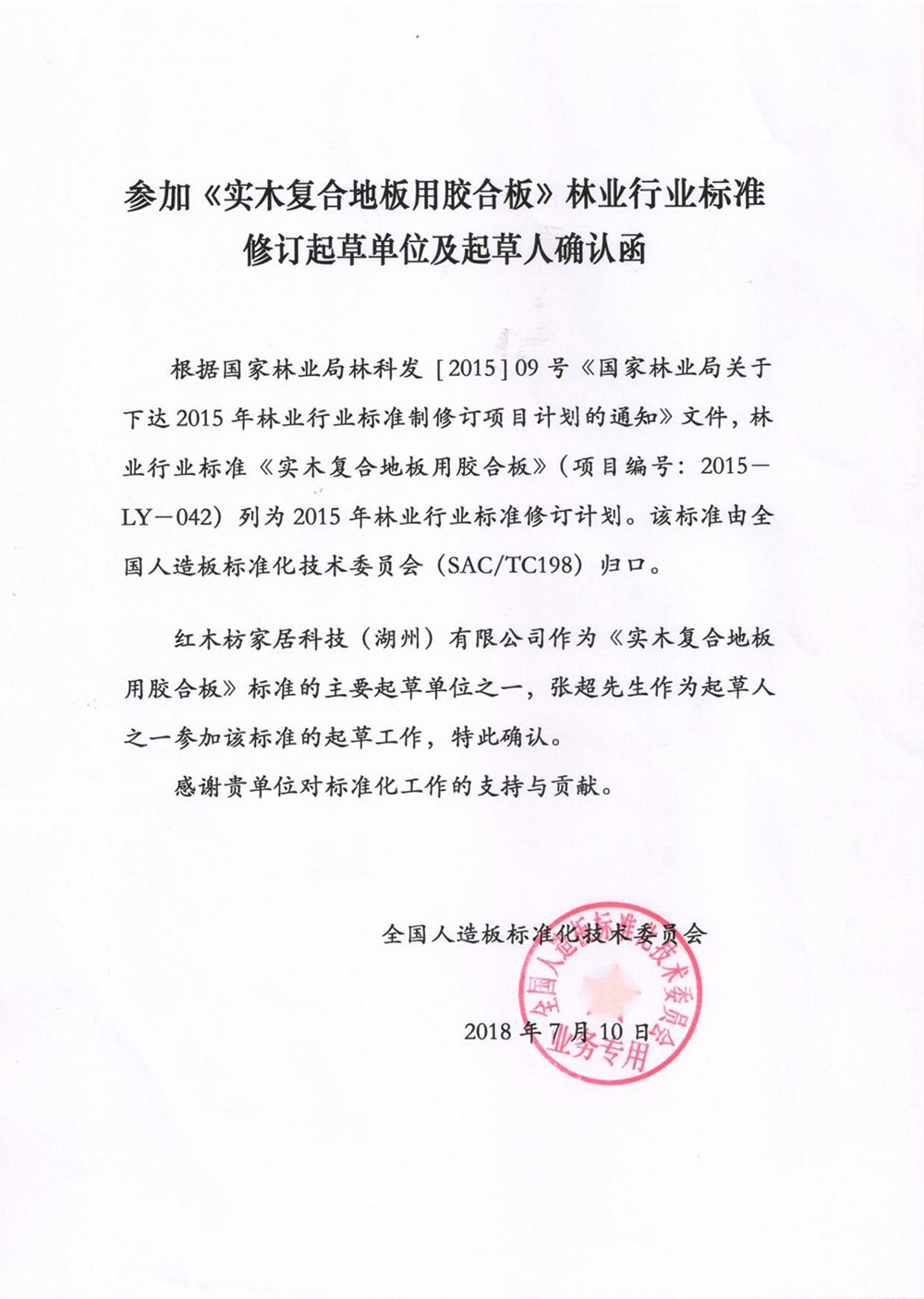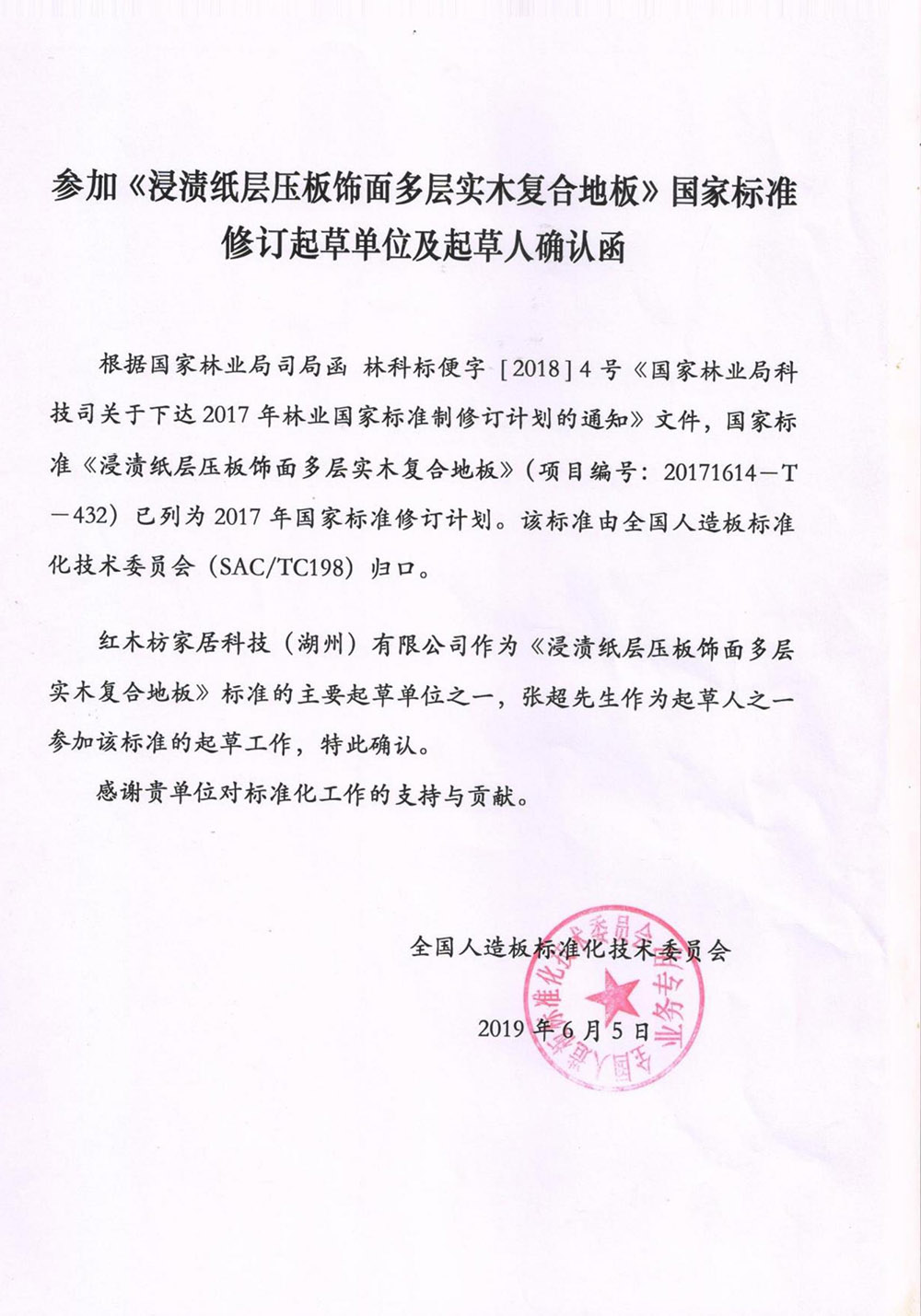 紅木枋地板于2013年投資1000萬在蘇州市吳江區(qū)成立了蘇州市紅枋家居有限公司,并于2019年3月將蘇州公司遷移到浙江湖州南潯區(qū),成立紅木枋家居科技(湖州)有限公司,公司2019年被湖州市政府評為“南太湖精英計劃企業(yè)”專業(yè)生產(chǎn)銷售其核心專利《高穩(wěn)定多層復(fù)合地板》——科技新實(shí)木地板(國標(biāo)名:浸漬紙層壓飾面多層實(shí)木復(fù)合地板)。是目前國內(nèi)木地板行業(yè)科技創(chuàng)新能力較強(qiáng)、發(fā)展速度最快的制造企業(yè)之一,公司為中國木材流通協(xié)會會員單位、南潯地板協(xié)會理事單位,為《浸漬紙層壓飾面多層實(shí)木復(fù)合地板》GB/T24507標(biāo)準(zhǔn)主要起草單位,《實(shí)木復(fù)合地板用膠合板》行業(yè)標(biāo)準(zhǔn)LY/T1738主要起草單位,《負(fù)氧離子地板》協(xié)會標(biāo)準(zhǔn)起草單位,獨(dú)家擁有《高穩(wěn)定多層復(fù)合地板》專利技術(shù)。