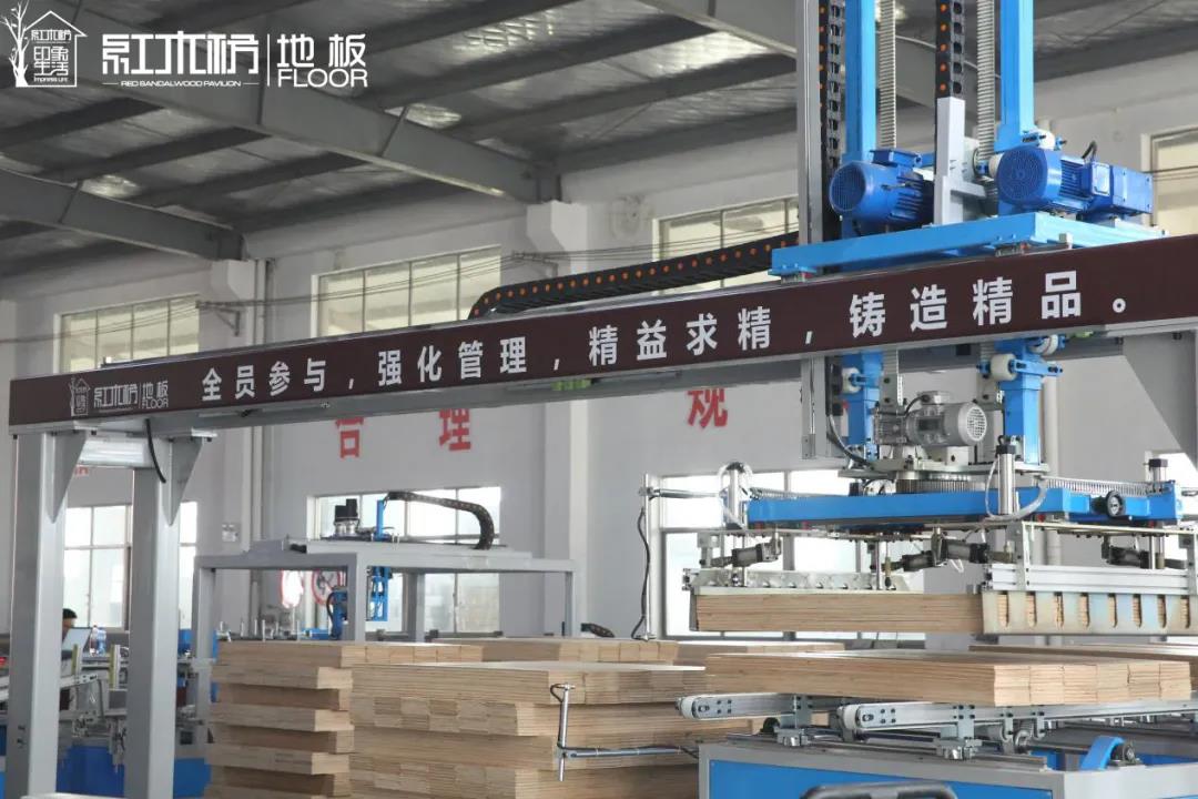 紅木枋地板生產(chǎn)硬件在公司喬遷新生產(chǎn)基地的同時,再度更新?lián)Q代全面升級。據(jù)紅木枋家居董事長張超透露,隨著生產(chǎn)設(shè)備的升級換代,2019年,紅木枋地板將達到一個全新的工藝水平,正式邁入工業(yè)制造4.0時代。參觀紅木枋全新的生產(chǎn)車間,可以看到在紅木枋地板從開槽機口進入,后通過傳動輥臺輸送到自動化鋸切線、封蠟線、包裝線等,最后包裝完畢的成品,又被機械臂整齊堆放成一摞,這條更富科技更高效率的生產(chǎn)線已初具雛形。