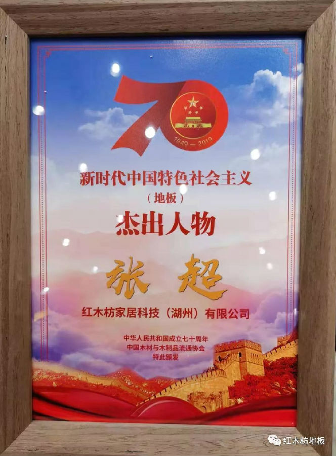 2019年10月25日,由中國木材與木制品流通協(xié)會和湖州市人民政府共同主辦的“2019世界木地板大會暨第六屆南太湖論壇”在浙江湖州盛大召開。紅木枋地板應邀出席大會,并榮獲“新時代中國特色社會主義地板杰出企業(yè)”,董事長張超斬獲“新時代中國特色社會主義地板杰出人物”大獎。
