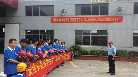 2019年7月16日,湖州市湖北商會(huì)蒞臨紅木枋地板慰問,關(guān)愛企業(yè)員工,炎炎夏日為每一個(gè)員工配送了安全頭盔。
