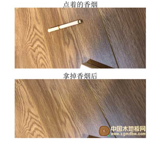 一根點燃的香煙,放在地板上三十秒鐘……時間到了之后,拿起香煙,地板表面沒有絲毫損壞。